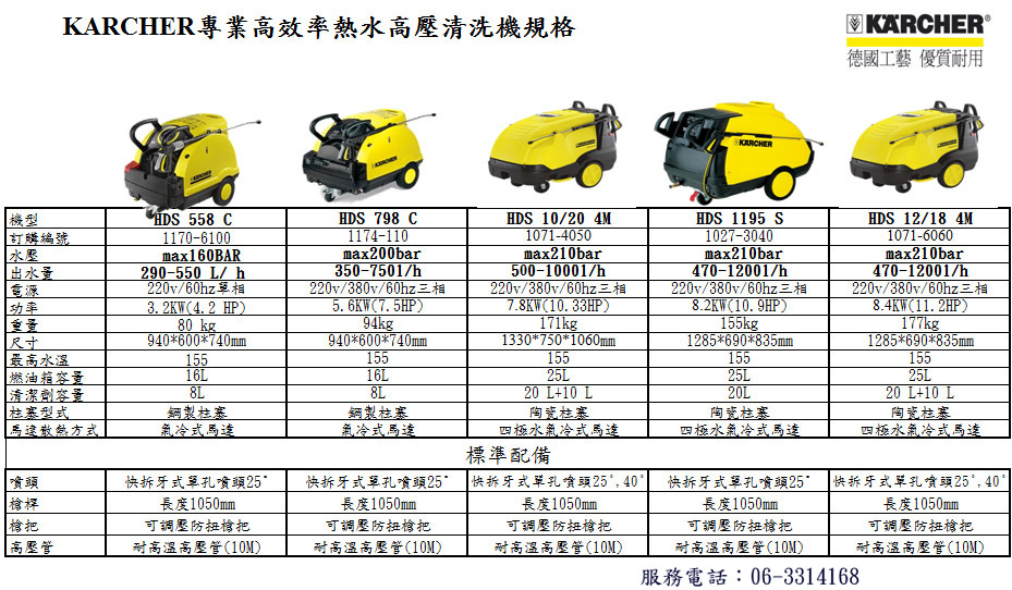 熱水高壓清洗機規格  HDS 558C  HDS 798C