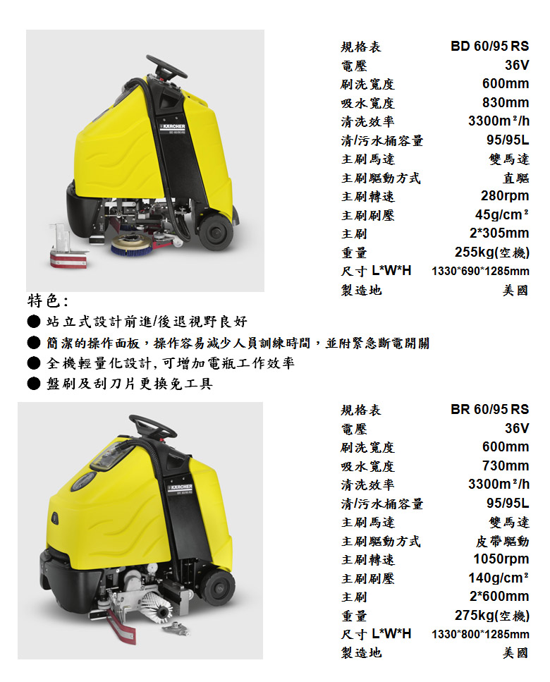 BD 60/95 RS / BR 60/95 RS 站立式洗地機  BD 75/140 駕駛式洗地機