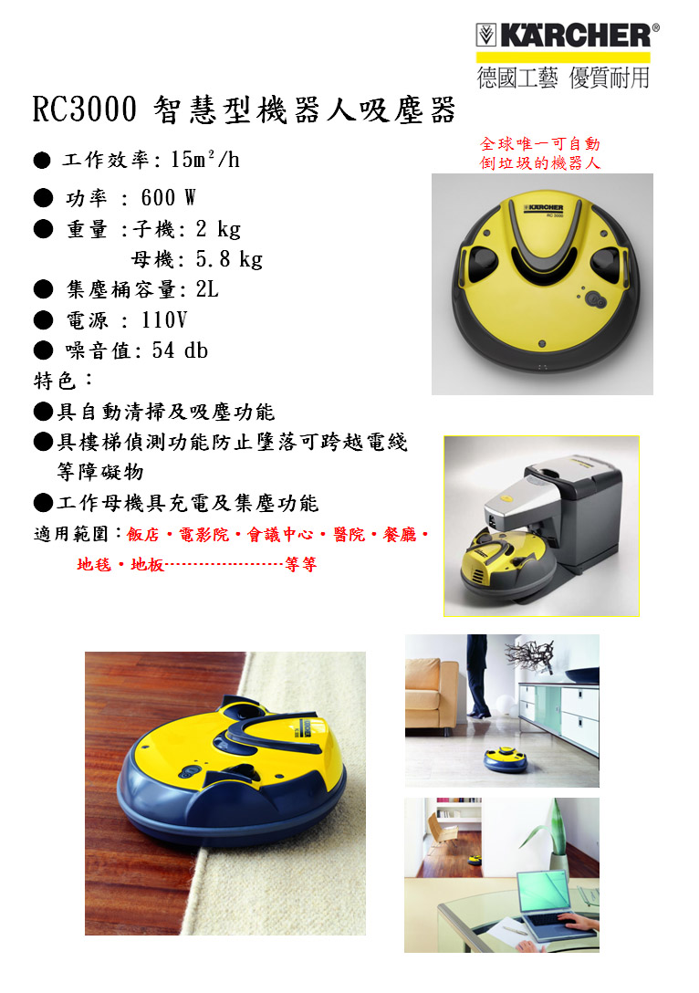 RC3000 智慧型機器人吸塵器  BV5/1專業型背負式吸塵器  T12/1 專業型超靜音型吸塵器