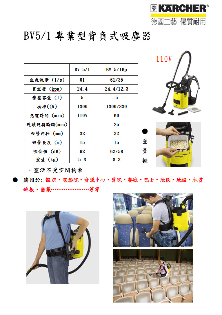 BV5/1 專業型背負式吸塵器