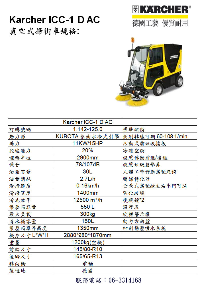 KARCHER ICC-1 D AC 真空式掃街車