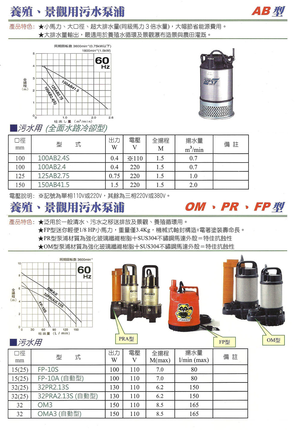 養殖、景觀用污水泵浦  沉水式工事用污泥水泵浦(KTZ型)